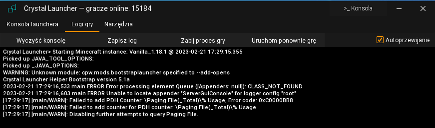 spróbuj przeinstalować tę wersję gry, wejdź do folderu Instances w folderze launchera i usuń folder Vanilla_1.18.1 (przed tym zrób backup save i resourcepacków, jeśli jakieś w niej masz)