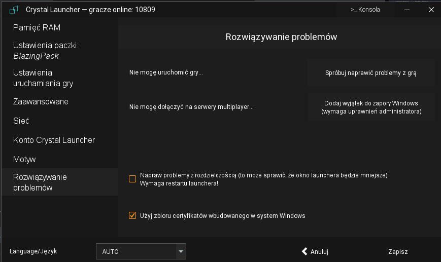 dobra, odpal CLa jeszcze, wejdź w ustawienia, w zakładkę “Rozwiązywanie problemów” i daj screena