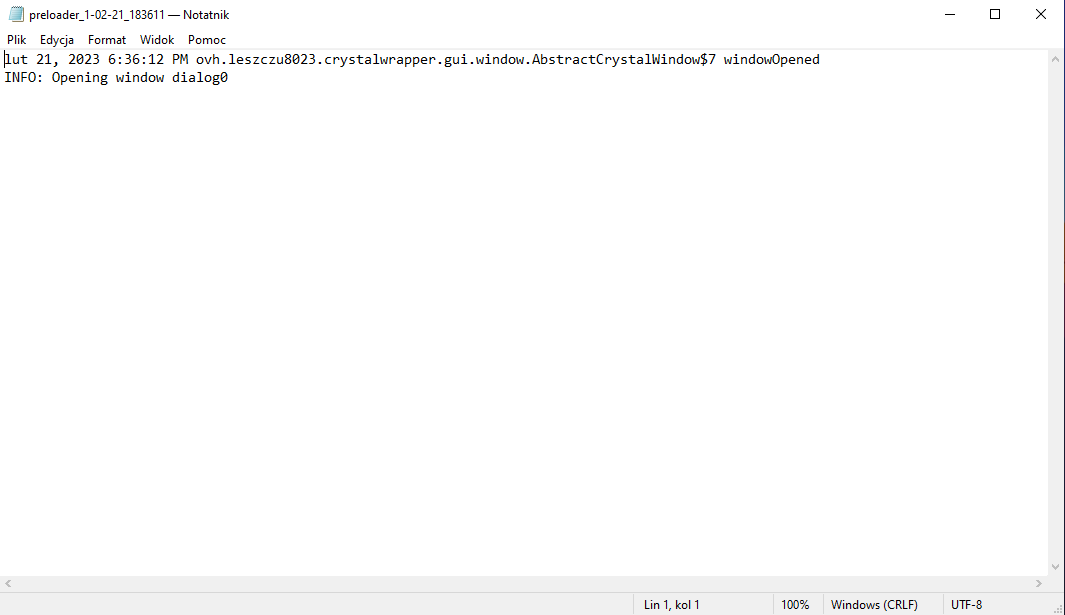 podczas gdy chcę włączyć crystal launchera ten nie uruchamia się wyskakuje tylko jego okienko przez 1 sec, nastepnie wyskakuje okienko “Crystal-Launcher Pre-Loader” ktore rowniez nie powoduje uruchomienia się launchera. Probowalem wszystkiego odinstalowac i zainstalowac jave, odinstalowac i zainstalowac crystala, odinstalowac i zainstalowac crystala na innym dysku, uruchamiac jako administrator… nie wiem co jescze moge zrobic i prosze o pomoc.