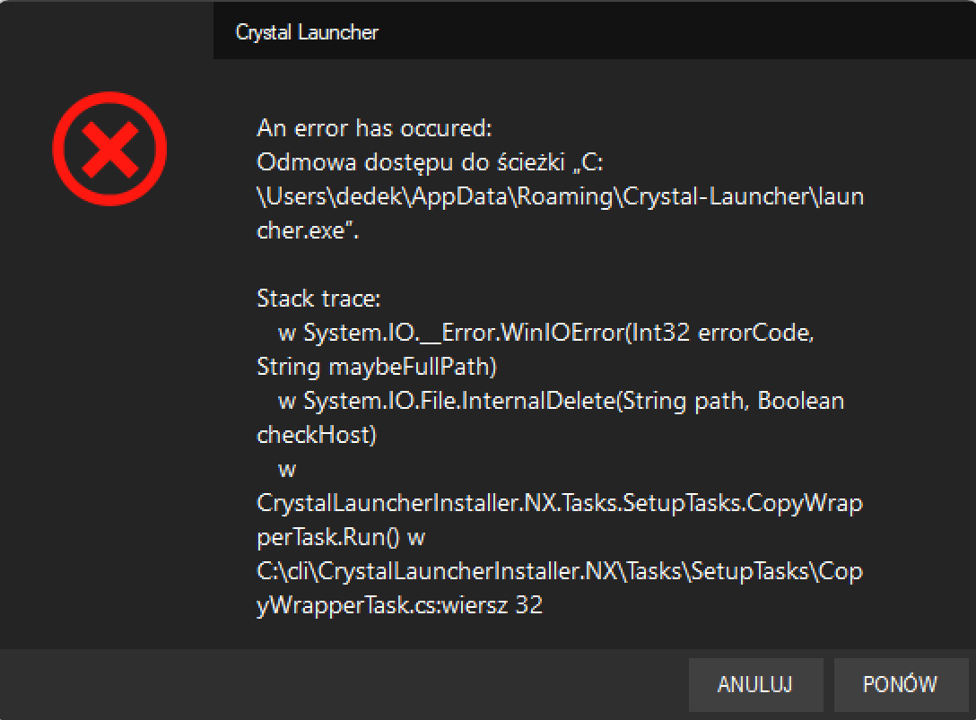 Zainstalowalam crystala z orginalnek strony i za nic nie jestem w stanie naprawic tego erroru (dodam ze nie umiem sie bawic w komputery i potrzebuje szybkiej i prostej odpowiedzi)