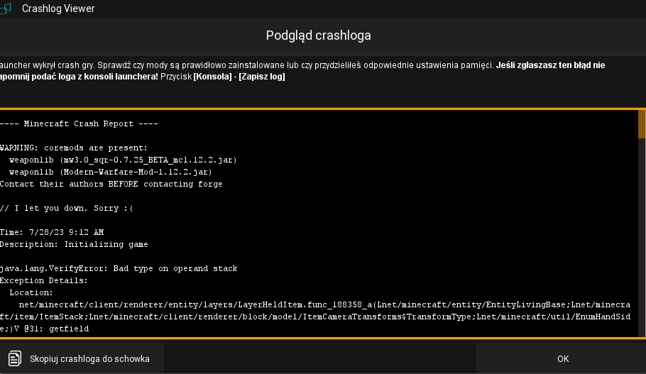 Jeżeli launcher się nie może uruchomić