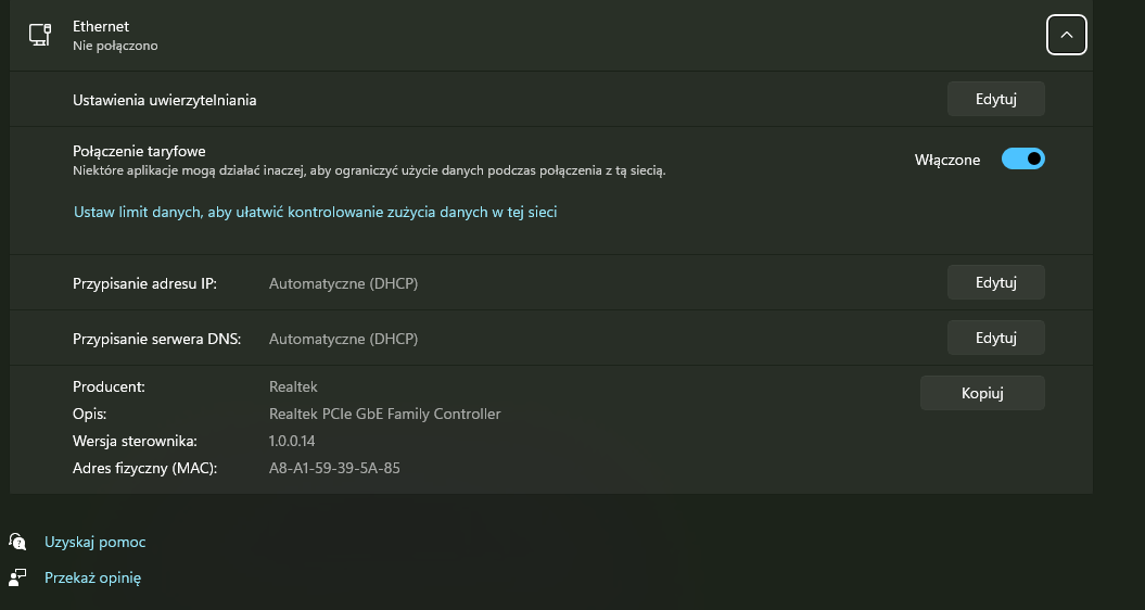 Przypisywanie serwer DNS > Edytuj