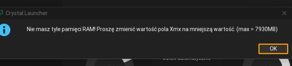 To zmień na jeszcze mniejszą, bo wolnego (niezajętego przez inne programy) masz tylko prawie 2,5 gb