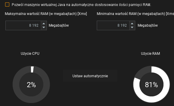 z tego co widzę masz 32GB pamięci RAM w swoim komputerze/laptopie więc 1/4 z tego przeznacz na sam proces minecrafta
