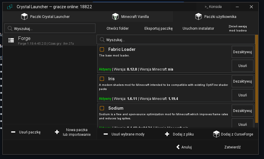Siemaneczko! mam problem z iris shaders. Mam pobranego forge’a na 1.19.4 oraz do niego potrzebne rzeczy. Gdy uruchamiam forge’a nie laduja mi sie mody. Ma ktos pomysl jak to naprawic?