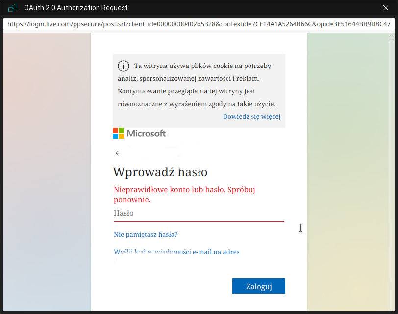 Ale orzy logowaniu Pisze że konto lub hasło jest nieprawidłowe, nawet jeżeli loguje się przez kod wysyłany na poczte