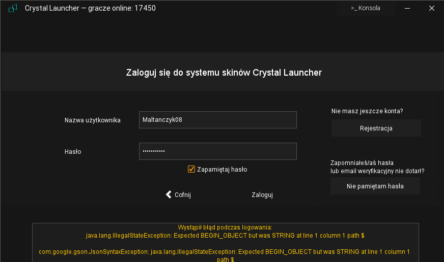 Podczas próby logowania, pokazuje błąd, a gdy chce zmienić hasło, to po chwili w okienku wyskakuje Error 500