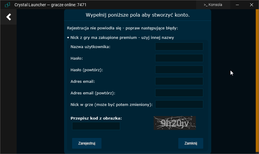 mam jakiś problem z utworzeniem konta, cały czas ląduje w miejscu gdzie wpisuje się dane do rejestracji z pomarańczowym paskiem na boku. Wpisywałem już różne dane, kody z obrazków na szczęście też nie należą do najtrudniejszych. Szukałem możliwości utworzenia konta na stronie ale nie znalazłem. Jest jakieś rozwiązanie?