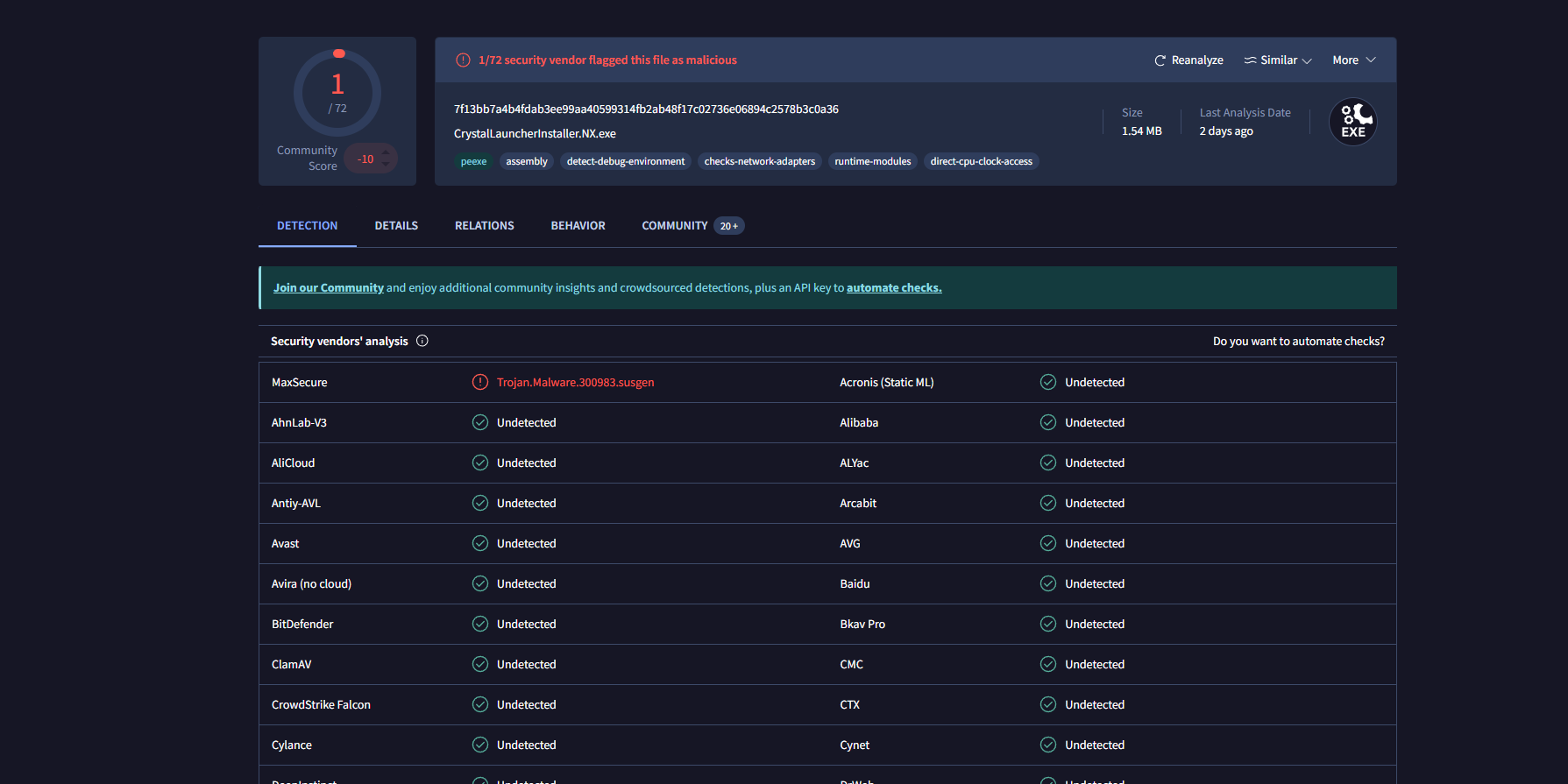 Możesz i tak śmiało pobrać bo detekcja 1/72 to false positive