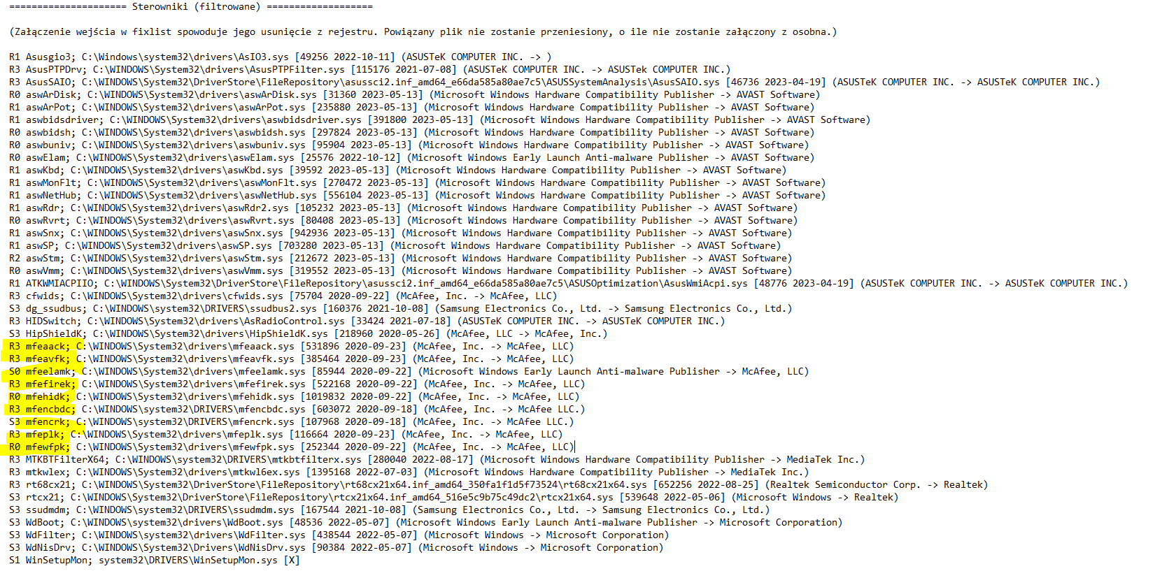 ale i tak polecałbym Ci wywalić McAfee skoro i tak nie masz już na niego licencji, bo widziałem że ładuje on sporo sterowników do kernela Windowsa